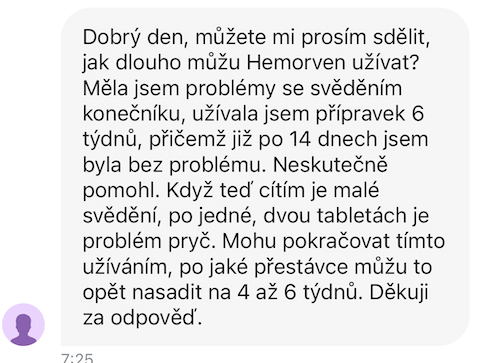 Užívanie produktu HEMORVEN viedlo k úľave od bolesti v konečníku už za 16 dní od prvého užitia, a po prvom mesiaci sa v priemere zmiernilo o 51%.