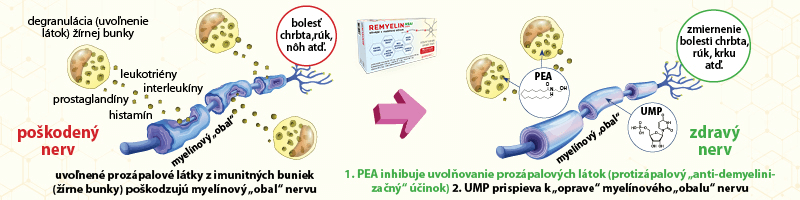 Slovensko-talianska vývojová spoločnosť PHARCO GRANCREO priniesla v roku 2020 svetovo jedinečný produkt REMYELIN. Jeho zloženie je prísne vedecky cielené na obnovu myelínu v nervoch (tvz. proces remyelinizácie). Zároveň prispieva k zníženiu šírenia neuropatickej straty myelínu v ďalších nervov. Najnovšie je doplnený aj o látku s výrazným protizápalovým a analgetickým pôsobením. Tým rýchlejšie a účinnejšie pôsobí pri spomenutých ťažkostiach.