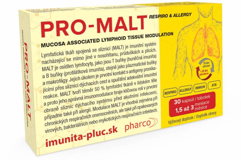 PRO-MALT obsahuje 30 kapsúl, užíva sa vždy 10 dní v mesiaci a jeho imunomodulačný účinok obvykle pretrváva ďalšie 3 týždne. Je bežne dostupný v lekárňach a pri obvyklej cene, vychádza denná dávka na menej ako 1 Euro, a to stojí za vyskúšanie.