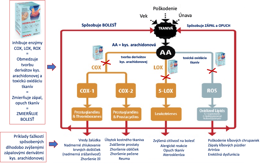 Ako HERBALGIN znižuje v tele zápalové procesy, ukazuje obrázok